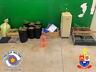 Durante patrulhamento os policiais receberam uma denúncia informada via COPOM (Centro de Operações da Polícia Militar do Interior), de que pela Rua Mário Tocchini, Jardim Castelo Branco, de que uma residência em reforma teria um indivíduo que usava o local para cultivar maconha.