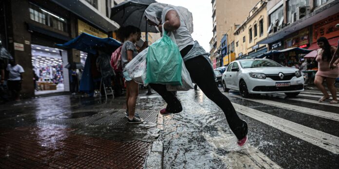 As chuvas devem ocorrer de forma irregular, acompanhadas de raios e ventos de intensidade moderada a forte. Segundo a Defesa Civil, até quarta-feira (29), as temperaturas vão cair gradualmente.