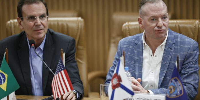 Rio de Janeiro (RJ), 26/02/2026 – O Chefe de Departamento da Polícia da Cidade de Nova York, Michael J. LiPetri, com o prefeito Eduardo Paes na Central de Inteligência, Vigilância e Tecnologia de Apoio à Segurança Pública - CIVITAS Rio. Foto: Fernando Frazão/Agência Brasil