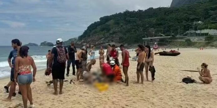 Socorrido na praia, o homem não resistiu ao acidente. A mulher foi encaminhada ao Hospital Municipal Miguel Couto, na Gávea.
