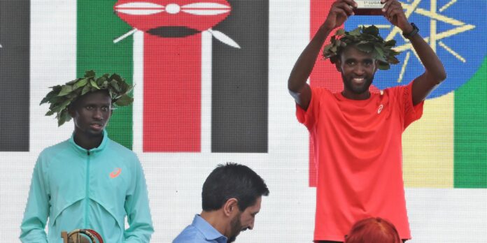 Com uma arrancada nos minutos finais, o etíope Muse Gisachew ultrapassou o queniano Jonathan Kipkoech Kamosong e venceu hoje (31) a centésima edição da Corrida Internacional de São Silvestre.