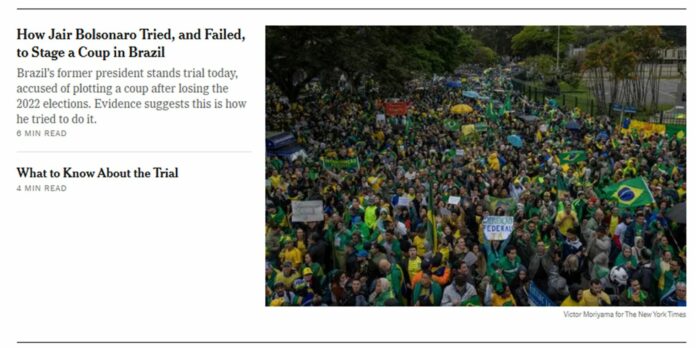 “Em um caso que muitos veem como um teste crucial para a jovem democracia do país. Com um vasto acervo de provas processuais, a maioria dos analistas afirma que é quase certo que ele será considerado culpado e poderá enfrentar décadas de prisão”, escreveu o NYT.