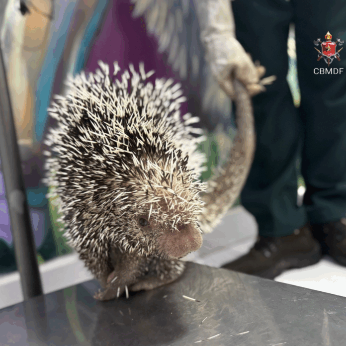Na noite desta quarta-feira (01/10), o Corpo de Bombeiros Militar do Distrito Federal resgatou um porco-espinho que estava sobre uma árvore no balão de acesso ao Guará.
