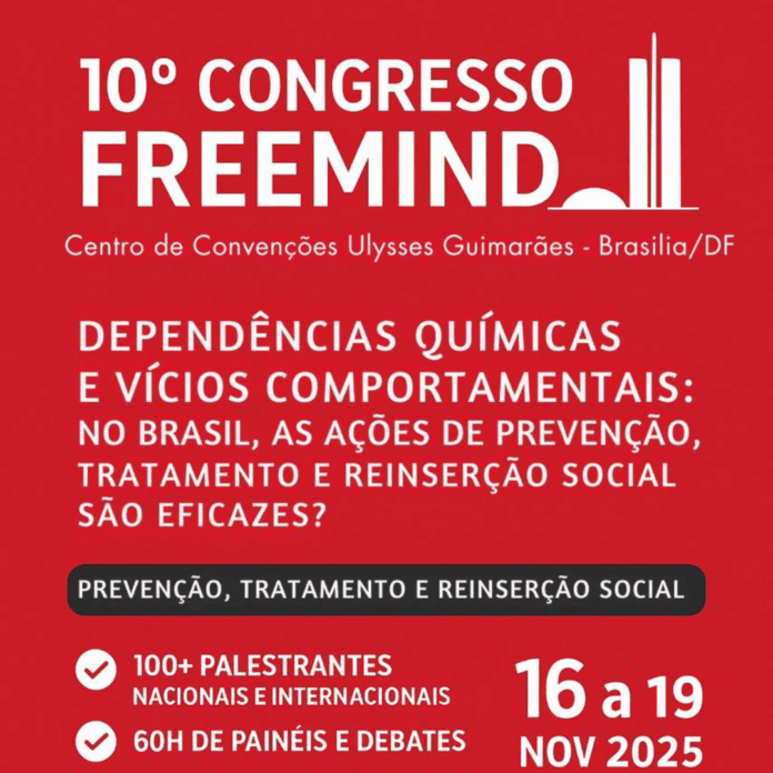 Entre os dias 16 e 19 de novembro de 2025, Brasília receberá o 10º Congresso Freemind, no Centro de Convenções Ulysses Guimarães. O evento reúne especialistas nacionais e internacionais para debater os desafios relacionados às dependências químicas e vícios comportamentais, com foco em ações de prevenção, tratamento e reinserção social.