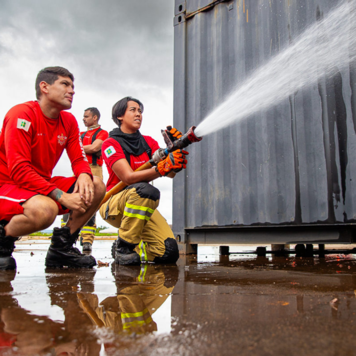 A programação contemplou, ainda, instrução prática em simulador de desenvolvimento de incêndio, proporcionando aplicação dos conceitos apresentados em ambiente controlado e orientado à tomada de decisão estratégica e uma atividade de resgate de bombeiro.
