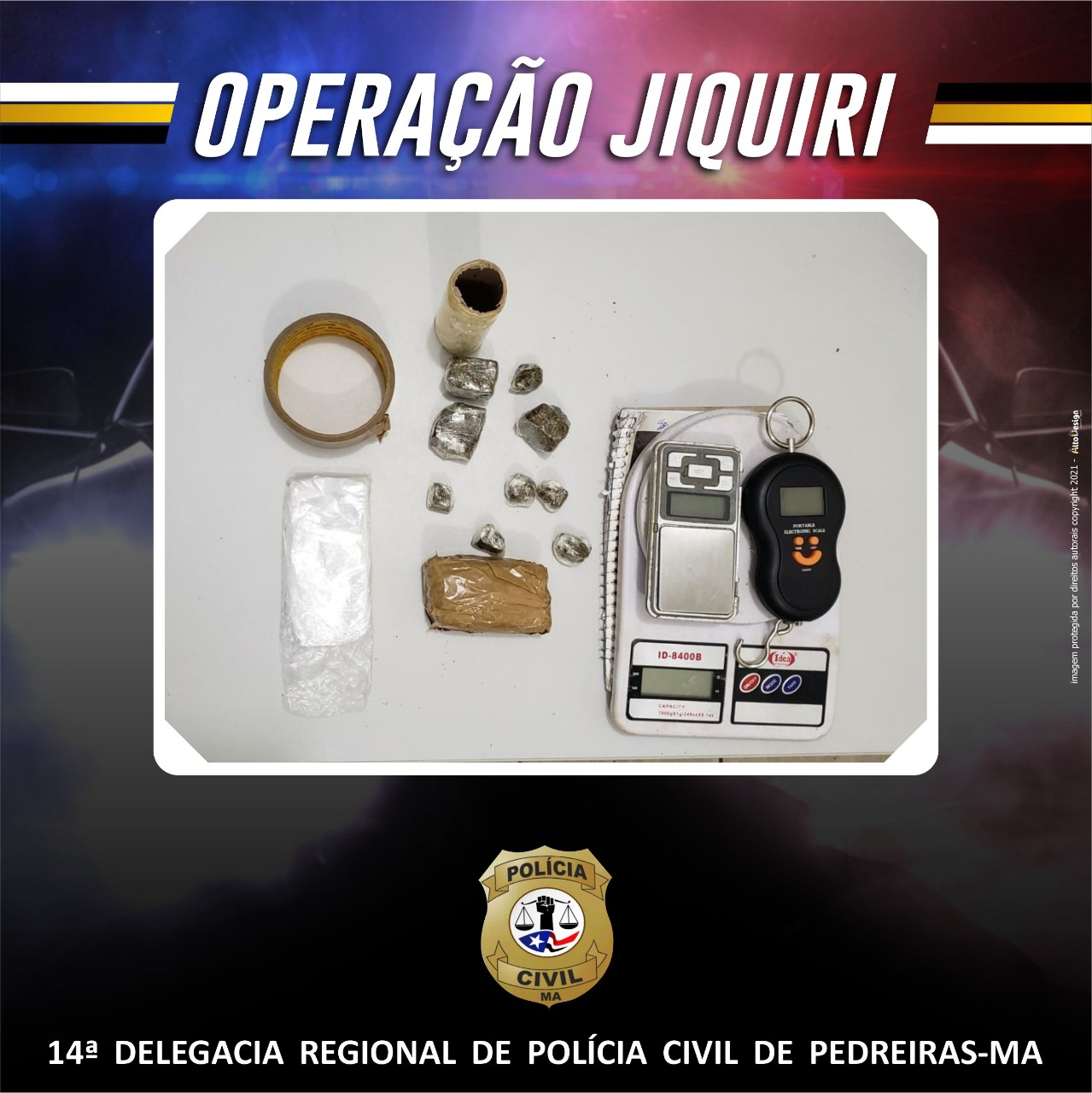 Durante cumprimento de Mandado de Busca e Apreensão hoje (23), por volta das 06h, em imóvel residencial, no Povoado Jiquiri, zona rural do município de Trizidela do Vale/MA, a Polícia Civil do Maranhão prendeu em flagrante delito J.F.P.D.S., na posse de drogas e apetrechos para Tráfico.