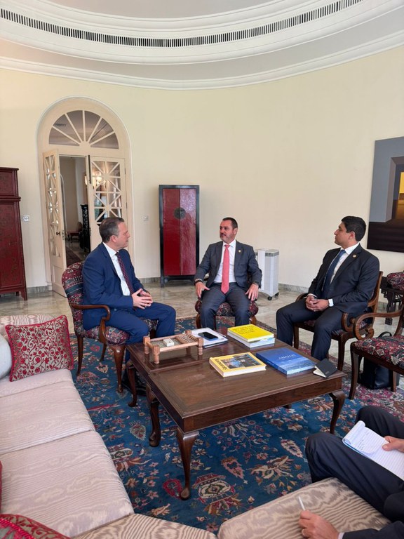 Nova Délhi/Índia. O diretor-geral da Polícia Federal, Andrei Rodrigues, foi recebido pelo embaixador brasileiro na Índia, Kenneth da Nóbrega, na sede da representação diplomática brasileira no país estrangeiro. Andrei está na Índia em função da visita do presidente Lula ao país asiático.