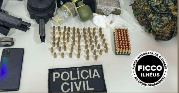 Ilhéus/BA. Na manhã de quarta-feira (8/10), a Força Integrada de Combate ao Crime Organizado de Ilhéus (FICCO/Ilhéus), em conjunto com a Polícia Militar e a Polícia Civil da Bahia, apreendeu armas, granadas e entorpecentes no município de Ibirapitanga/BA.