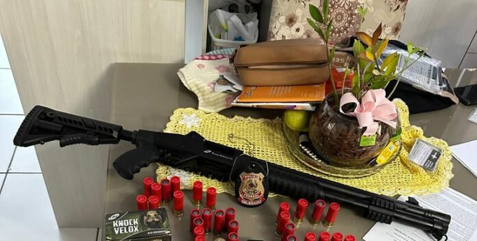 Hoje, policiais federais cumpriram quatro mandados de busca e apreensão nas cidades de Foz do Iguaçu e Novo Hamburgo, expedidos pela Vara Regional de Garantias da cidade de Chapecó. O homem preso em flagrante estava na posse de uma espingarda calibre 12 e várias munições. Também foram apreendidos aparelhos celulares dos investigados.