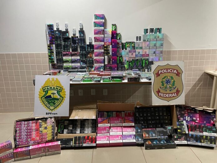 Durante a vistoria no bagageiro do veículo, a equipe localizou volumes suspeitos. Após a abertura das caixas, constatou-se que o material se tratava de cigarros eletrônicos de origem estrangeira.