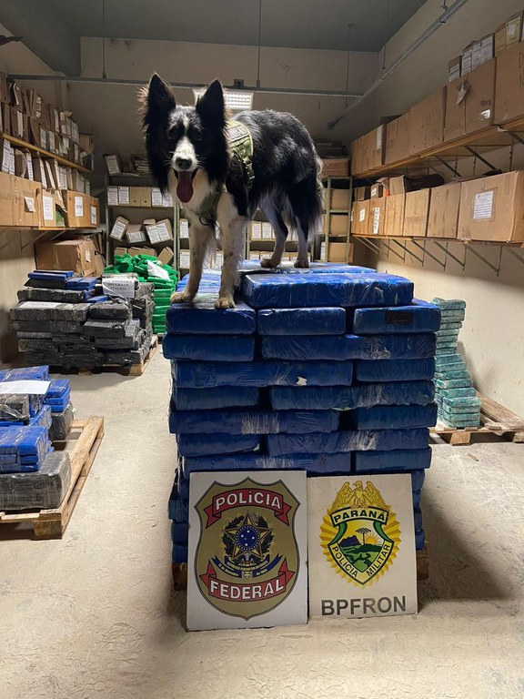 Guaíra/PR. Nesta quinta-feira (16/1), a Polícia Federal, em ação integrada com o pelotão de operações com cães do Batalhão de Polícia de Fronteira (BPFRON), durante patrulhamento pela área rural de Pato Bragado/PR, localizou, em meio à mata ciliar do Lago de Itaipu, diversos fardos de substância análoga a maconha, que após pesados totalizaram 1.541 kg da droga. O responsável não foi localizado.