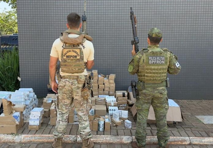 Guaíra/PR. Nessa segunda-feira (2/3), durante patrulhamento realizado na calha do Rio Paraná, em Altônia/PR, policiais federais e policiais militares do BPFron/PMPR abordaram uma embarcação com mercadorias contrabandeadas do Paraguai.