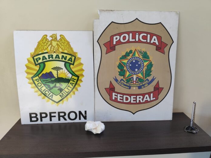 Guaíra/PR. Nessa sexta-feira (27/3), a Polícia Federal e os policiais militares do BPFron/PMPR realizavam diligência no município de Guaíra/PR, quando visualizaram o condutor de uma motocicleta com um volume anormal na região da cintura. Na abordagem, foi identificada a presença de 150 gramas de cocaína com o homem.