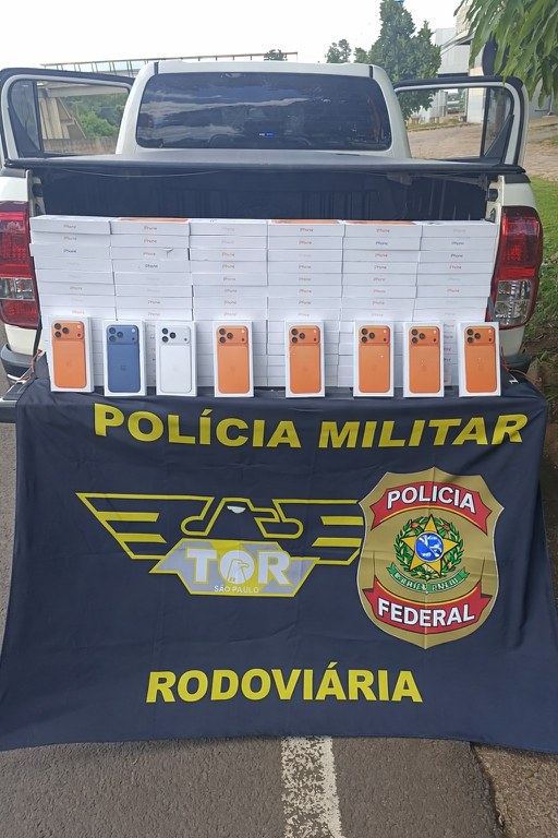 Cascavel/PR. A Polícia Federal, em ação conjunta com a Polícia Militar de São Paulo, apreendeu 92 aparelhos celulares nesta quinta-feira (22/1). A apreensão ocorreu durante fiscalização em uma rodovia de acesso ao município de Presidente Prudente/SP.