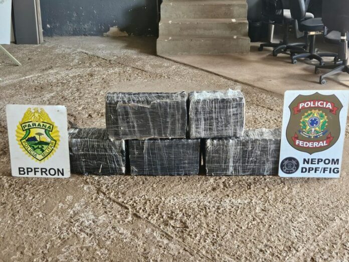 Foz do Iguaçu/PR. A Polícia Federal e a Polícia Militar do Paraná apreenderam, nesta quarta-feira (26/11), cinco fardos de maconha prensada, pensando cerca de 90 kg, durante ação integrada realizada na margem do Rio Paraná, em Foz do Iguaçu.