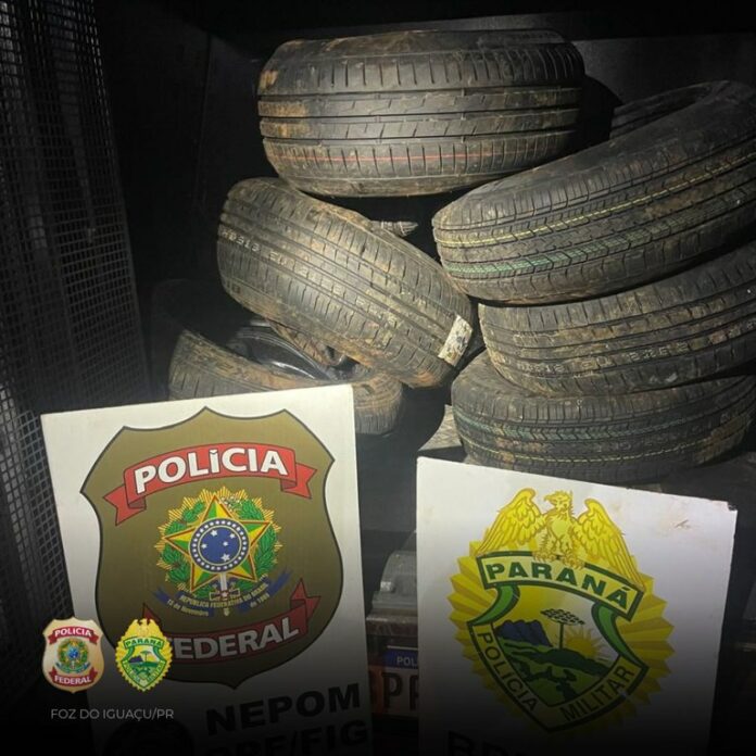 Foz do Iguaçu/PR. Policiais federais e militares apreenderam, na madrugada desta sexta-feira (7/3), uma carga de pneus contrabandeados do Paraguai, nas margens do rio Paraná.