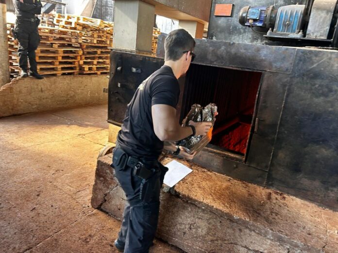 Guaíra/PR. A Polícia Federal realizou nesta quinta-feira (2/7) a nona operação de incineração de drogas do ano no município. Cerca de nove toneladas de entorpecentes foram destruídas durante o procedimento, totalizando quase 100 toneladas de substâncias ilícitas eliminadas em 2025.