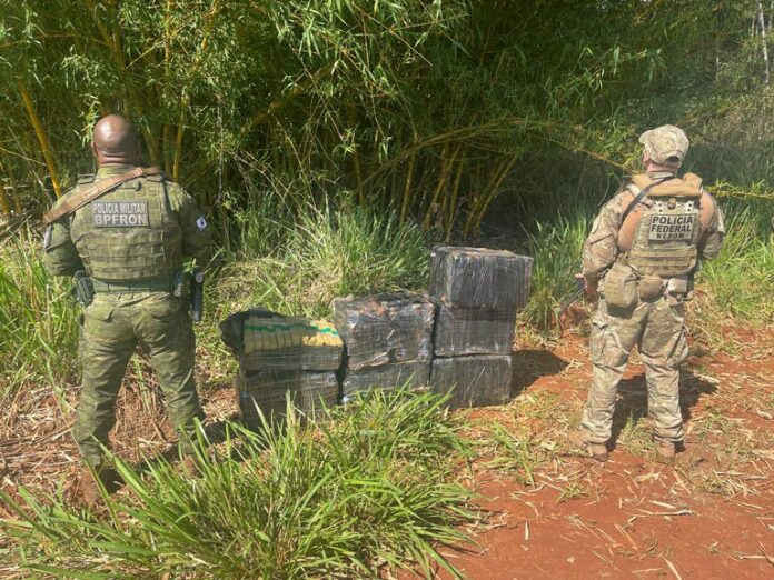 Foz do Iguaçu/PR. Em ação conjunta, a Polícia Federal, a Polícia Militar do Paraná e a Polícia Civil do Paraná apreenderam, na manhã desta sexta-feira (19/9), 307 kg de maconha prensada em uma área de mata ciliar às margens do Rio Iguaçu, em Foz do Iguaçu/PR.