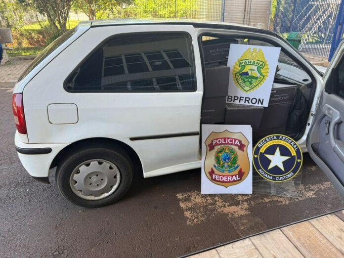 Foz do Iguaçu/PR. Em ação conjunta, a Polícia Federal, a Polícia Militar e a Receita Federal apreenderam, nesta sexta-feira (23/1), um veículo que transportava centenas de produtos descaminhados em Foz do Iguaçu.