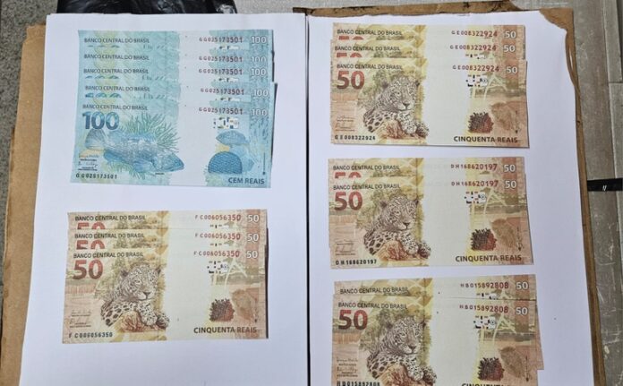 Foram apreendidas 15 cédulas falsas, sendo dez de R$ 50 e cinco de R$ 100. Algumas notas apresentavam a mesma numeração de série.