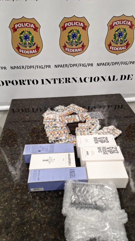 Foz do Iguaçu/PR. A Polícia Federal prendeu em flagrante, na tarde desta sexta-feira (16/1), um passageiro que tentava embarcar com dezenas de ampolas de medicamentos importados ilegalmente no Aeroporto Internacional de Foz do Iguaçu, no Paraná.