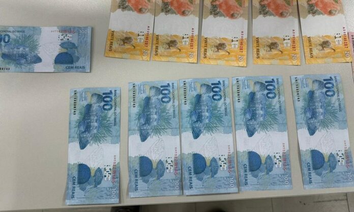 No pacote foram encontradas notas falsas de RS 100, R$ 20 e R$ 10. Quantidade e valores serão detalhados após a conclusão da perícia.