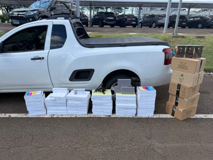 Durante a abordagem, o condutor foi preso, sendo encontrados no veículo diversos eletrônicos, uma arma de fogo calibre 9 mm e 31 munições. O veículo, o suspeito e o material apreendido foram encaminhados à Delegacia da Polícia Federal em Foz do Iguaçu para os procedimentos cabíveis.