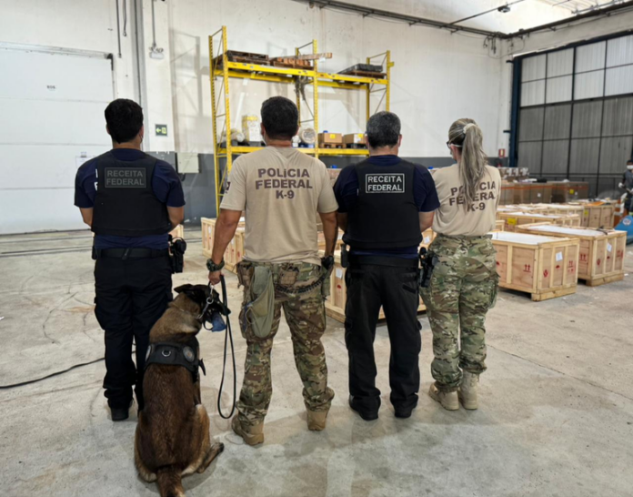 A droga oriunda de Recife/PE tinha como destino Portugal e estava oculta em tampos de mesa de madeira. A ação ocorreu com o auxílio de cães farejadores.