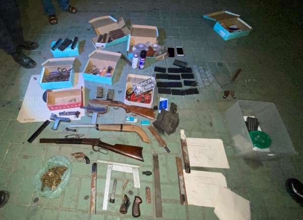 Os militares foram até o local indicado pelo casal, onde encontraram Elias Araújo que consentiu com a entrada dos policiais no imóvel. Na residência foram encontradas três submetralhadoras artesanais, uma espingarda calibre 12 artesanal, vasto material para confecção de armas, bem como peças de reposições para diversos tipos de armamentos, como cabos de revólveres, carregados de pistolas e submetralhadoras, moldes metálicos de revólver, miras a laser, entre outros.