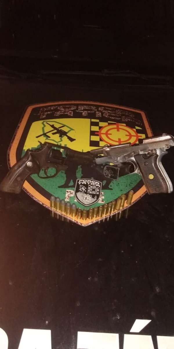 Mais tarde, na madrugada de ontem, 21, mais dois adolescentes foram apreendidos na mesma região dos disparos de arma de fogo. Suspeita-se que os menores também estejam envolvidos na mesma ocorrência. A equipe da FT abordou adolescentes de 17 anos, próximo à Praça da Estiva, e com eles foi apreendido uma pistola Taurus PT 58 HC Plus, um revólver calibre .38, oito munições calibre .38, uma munição picotada calibre .38, duas munições calibre .38 deflagradas e um carregador de pistola.