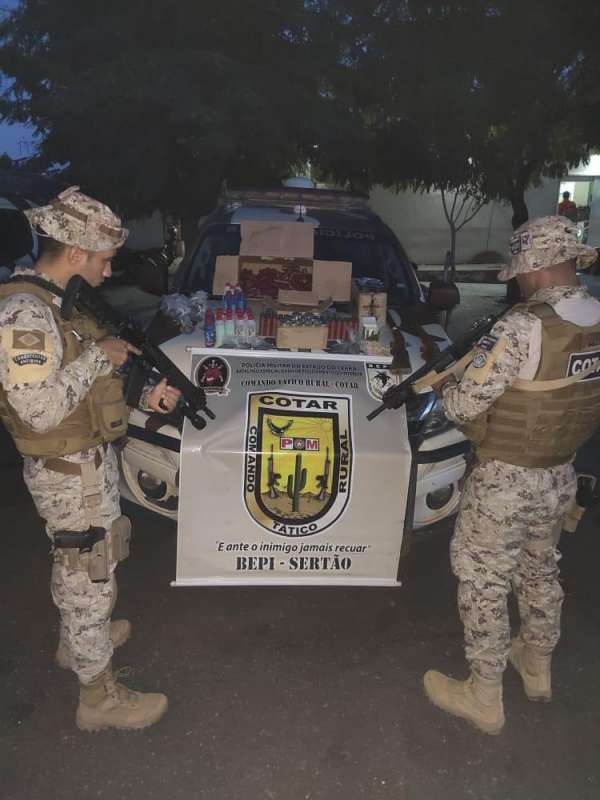 Por volta das 16h00 de ontem, equipe do BEPI/ CPCHOQUE, em patrulhamento na cidade de Nova Russas, região do Sertão dos Crateús, recebeu a informação de que um indivíduo conhecido por Bartolomeu estaria vendendo munições em seu comércio, no bairro Patronato. Os policiais militares do BEPI juntamente com o apoio da Força Tática foram até o local averiguar a denúncia, sendo recebidos pela esposa do suspeito, que confirmou a denúncia e autorizou a vistoria das equipes, que encontraram no local parte do material apreendido. As equipes foram até a localidade de Campos onde se encontrava o suspeito, e indagado se possuía mais materiais ilícitos, este confessou onde estariam escondidas mais munições e duas espingardas do tipo “lixadeira”.