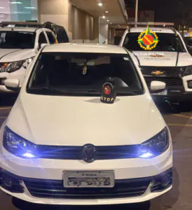 A equipe tomou conhecimento da ocorrência via COPOM e realizou contato com a vítima, que relatou ter sido abordada por dois indivíduos enquanto lavava o veículo em frente à sua residência, sendo ameaçada com uma faca. Na ação, foram levados o automóvel, dois aparelhos celulares e outros pertences. O veículo possuía rastreador, o que permitiu à vítima acompanhar sua movimentação e repassar a localização à equipe, indicando que ele havia sido abandonado após bloqueio remoto na QNM 19/21, em Ceilândia. De posse das informações, os policiais se deslocaram rapidamente ao local, onde encontraram o automóvel estacionado em via pública.