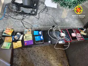 Durante a ação, uma mulher, apontada por uma das vítimas, foi encontrada em posse de oito celulares. Também foram apreendidos três cartões de vale-transporte, dois documentos falsos, um cartão de crédito e quantias em dólar, real e peso.
