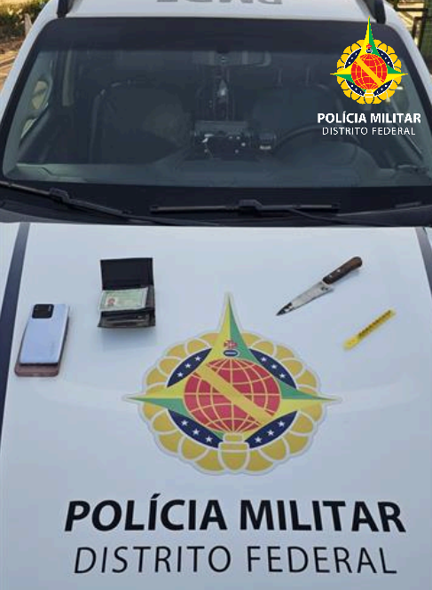 A vítima, ao se identificar como policial, reagiu, resultando em luta corporal. Os autores então tentaram agredir a vítima e quebraram o vidro do carro na tentativa de recuperar itens que o motorista havia retomado. Eles conseguiram levar um celular e uma carteira preta. Diante das confissões e da materialidade dos fatos, os dois foram encaminhados à 30ª Delegacia de Polícia para as medidas cabíveis. Foi apreendida uma faca, um celular recuperado e diversos pertences das vítimas.