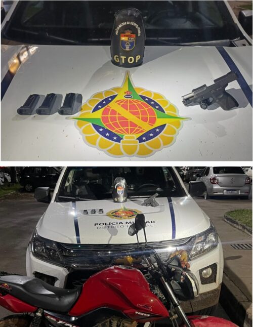 Na noite de ontem (28), por volta das 19h30, a Polícia Militar do Distrito Federal, através das equipes do GTOP 28, prendeu em flagrante um indivíduo na Chácara 165B, localizada no Sol Nascente. A prisão ocorreu durante patrulhamento tático e resultou na apreensão de uma arma de fogo calibre 9mm, três carregadores e uma motocicleta furtada com sinais de adulteração veicular.