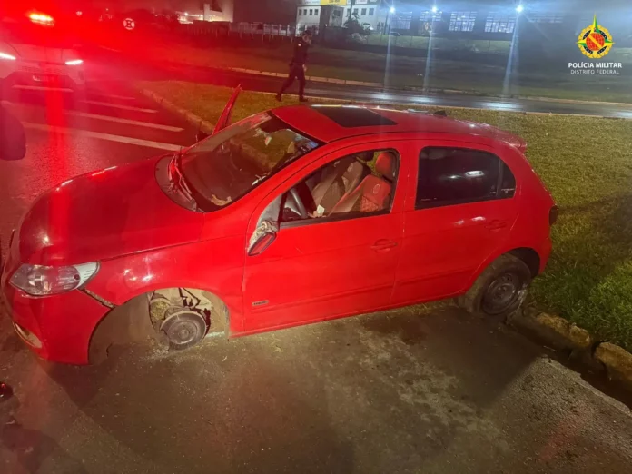 Diante da recusa em acatar a ordem legal, foi iniciado acompanhamento tático. Ao tentar acessar a via que leva à BR-060, o motorista perdeu o controle, colidiu contra o canteiro central e seguiu até parar o veículo nas proximidades do Restaurante Comunitário.