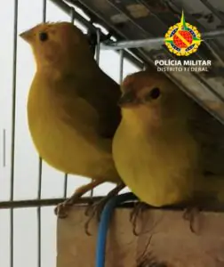 As aves foram localizadas em duas residências distintas. Ao todo, os policiais resgataram 11 canários-da-terra-verdadeiro (Sicalis Flaveola) e um cardeal-do-nordeste (Paroaria dominicana).