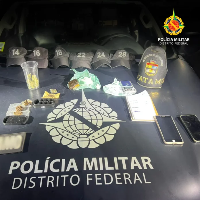 Na noite de 16/11/2025, durante atuação do estágio do XVII Curso de Patrulhamento Tático Móvel em Taguatinga, dois menores foram apreendidos pela prática de ato infracional análogo ao crime de tráfico de drogas. A ação ocorreu após abordagem que resultou na localização de porções de cocaína, porções de “dry”, flor de maconha, uma balança de precisão e um caderno de anotações relacionado à atividade ilícita.