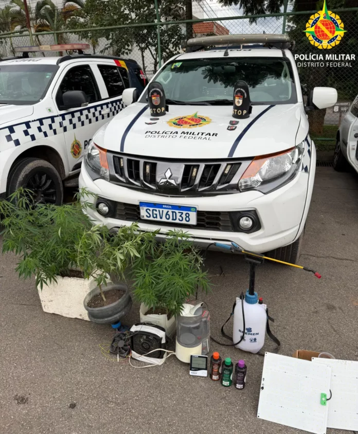 Nesta sexta-feira (27), por volta das 17h00, a Polícia Militar do Distrito Federal, por meio das equipes GTOP 47 e GTOP 48, apreendeu três pés de maconha e equipamentos utilizados para cultivo de entorpecentes na região de Riacho Fundo II.