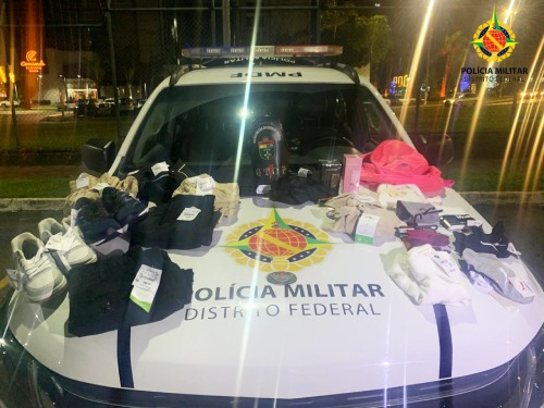 Durante patrulhamento de rotina, os policiais perceberam que o indivíduo desviou seu trajeto ao avistar a viatura, demonstrando nervosismo. Ele carregava uma mochila volumosa sob a camisa e apresentava os bolsos abarrotados. A abordagem foi realizada e, durante a busca pessoal, foram encontrados diversos produtos, incluindo roupas, calçados, perfumes e óculos, todos ainda com etiquetas e sem qualquer comprovação de compra.