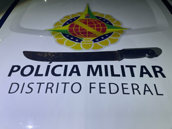 Considerando o estado de surto psicótico, atestado pela equipe do CBMDF, e o fato de a ocorrência ter sido um apoio a outra unidade, o facão foi devolvido a um responsável presente no local, não sendo constatada a prática de crime.
