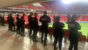 A segurança foi reforçada em momentos cruciais, como a abertura dos portões, o intervalo e o encerramento da partida.