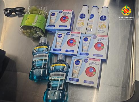 A equipe realizava patrulhamento quando flagrou o autor correndo a pé para fugir, enquanto funcionários gritavam “ladrão”. Após acompanhamento a pé, o suspeito foi contido na QNL 16, portando uma bolsa com produtos de higiene pessoal avaliados em aproximadamente R$ 300,00. Um funcionário do supermercado reconheceu o detido como autor do crime e informou que as imagens foram registradas pelo sistema interno de câmeras.