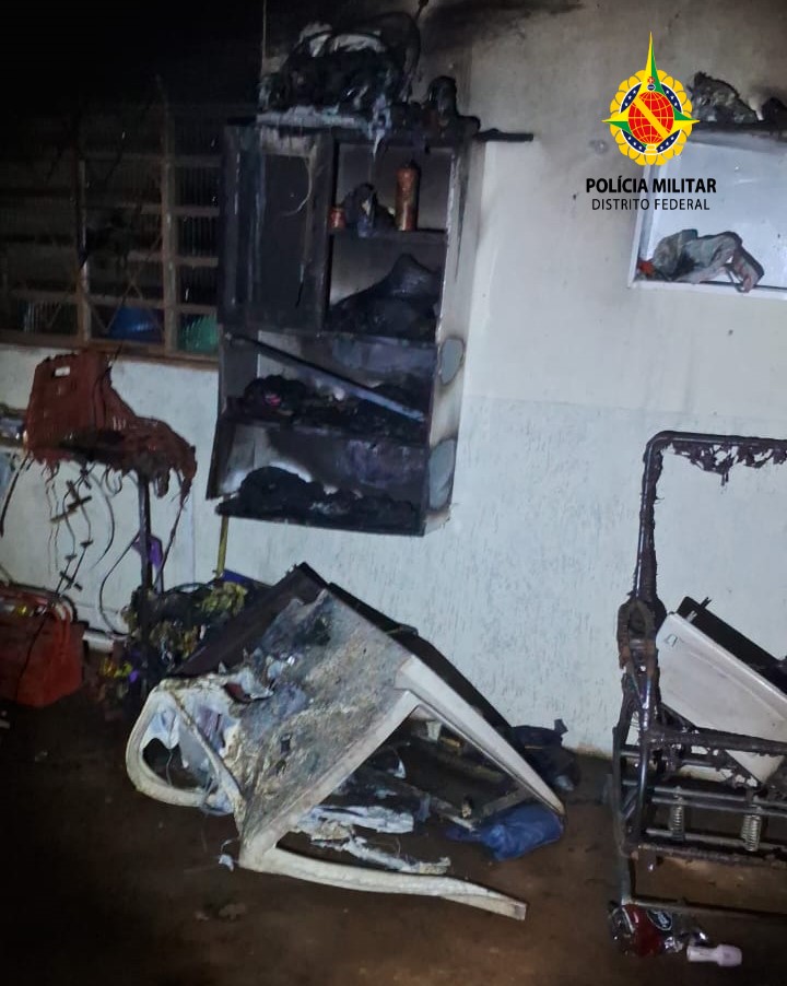 A equipe foi acionada para atender uma ocorrência no Incra 09. No local, o autor agrediu a vítima, causando fratura no nariz e lesões no ombro, braço e costas. Além disso, tentou atear fogo na mulher, sendo impedido pelo filho dela, que reagiu contra o agressor. O autor ainda incendiou sua própria motocicleta, e as chamas se alastraram para o imóvel, queimando objetos pessoais da vítima, do filho e da namorada dele. O incêndio foi contido por moradores e o CBMDF realizou o rescaldo.