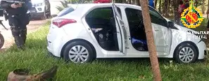 As equipes realizavam o patrulhamento na região quando receberam informações a respeito de um veículo Hyundai HB20 roubado no Itapoã.