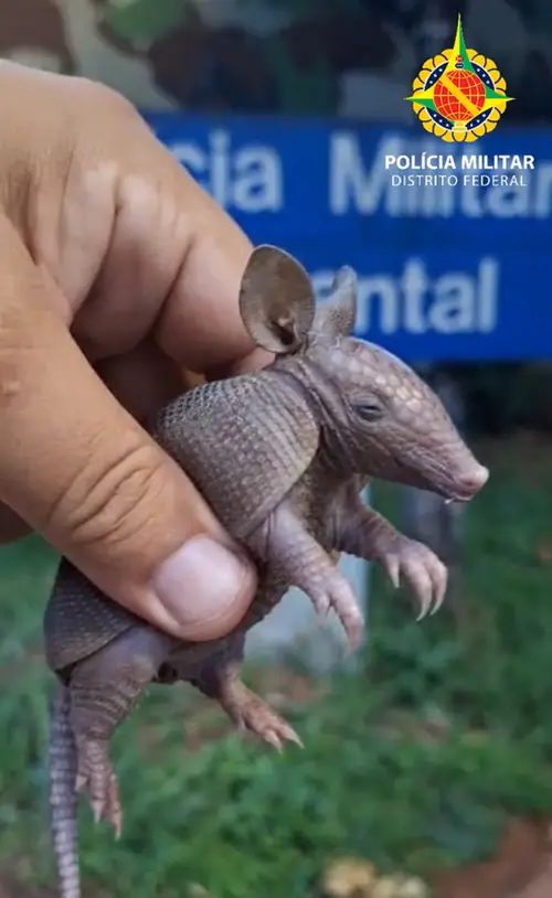 Na manhã desta terça-feira (11), o Batalhão de Policiamento Militar Ambiental (BPMA) resgatou um filhote de tatu que havia entrado em uma residência no Condomínio Village da Alvorada, no Lago Sul.