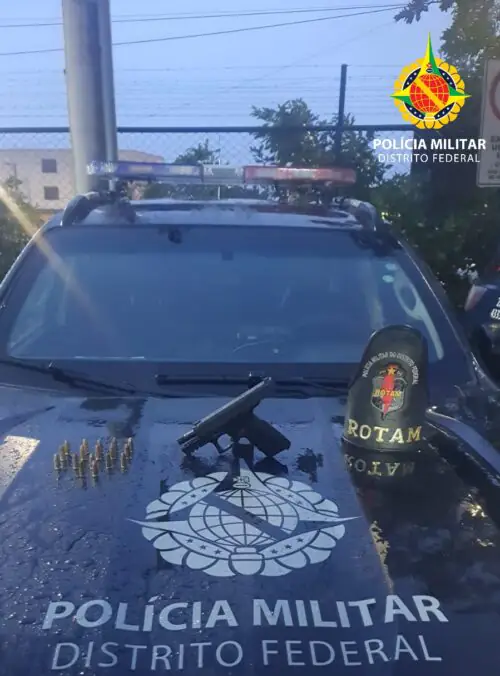 No início da noite desta terça-feira, 16 de dezembro de 2025, equipes do Batalhão de ROTAM da Polícia Militar do Distrito Federal (PMDF) prenderam um homem por porte ilegal de arma de fogo de uso restrito na Quadra 602 do Recanto das Emas. A intervenção ocorreu durante patrulhamento tático das equipes de ROTAM, com apoio do serviço da inteligência da PMDF. Ao passarem por um estabelecimento comercial, os policiais notaram um indivíduo que, ao avistar a viatura, levantou-se repentinamente e tentou se dirigir ao balcão, apresentando um volume suspeito na cintura.
