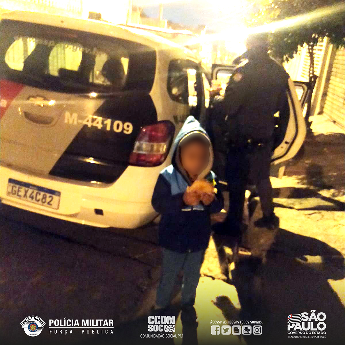 Sábado (31), policiais militares do 44º Batalhão de Polícia Militar Metropolitano, após ocorrência irradiada via COPOM – Centro de Operações da Polícia Militar de que uma criança estaria gritando na varanda da residência, pedindo socorro e que estaria com fome.