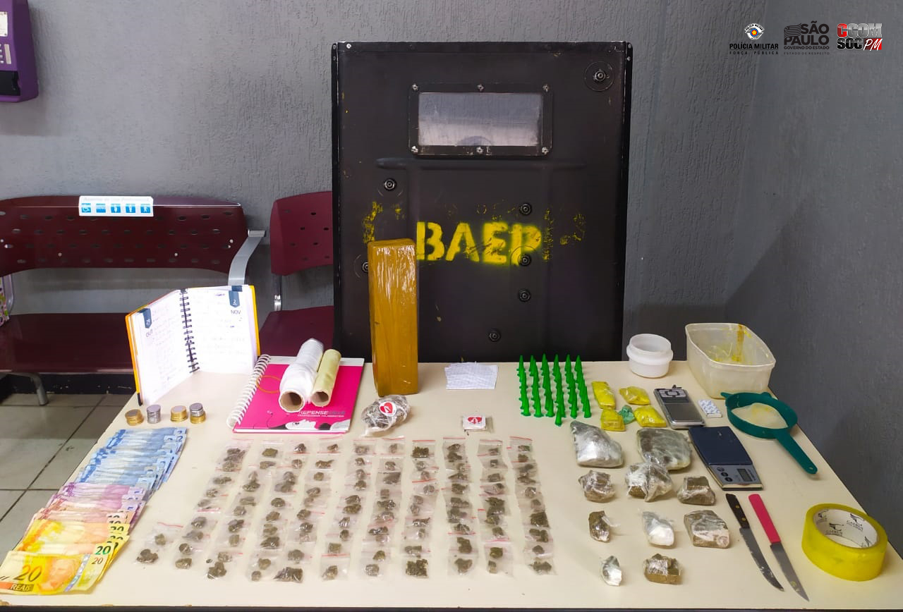 Foram apreendidos materiais para o embalo, drogas e dinheiro no apartamento. O menor infrator foi conduzido ao 2° Distrito Policial, juntamente com os objetos, e permaneceu à disposição da Justiça.