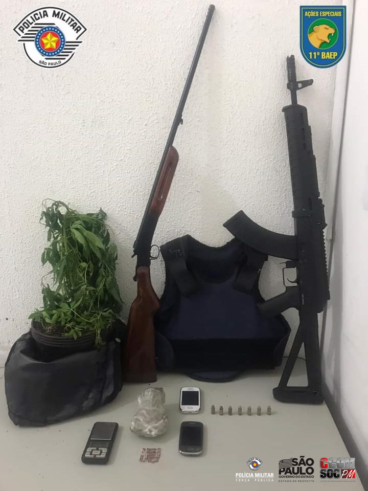 No último sábado (19), Policiais Militares do 11º Batalhão de Ações Especiais de Polícia, apreenderam uma réplica de fuzil AK47 em Ribeirão Preto, além outras armas e drogas.